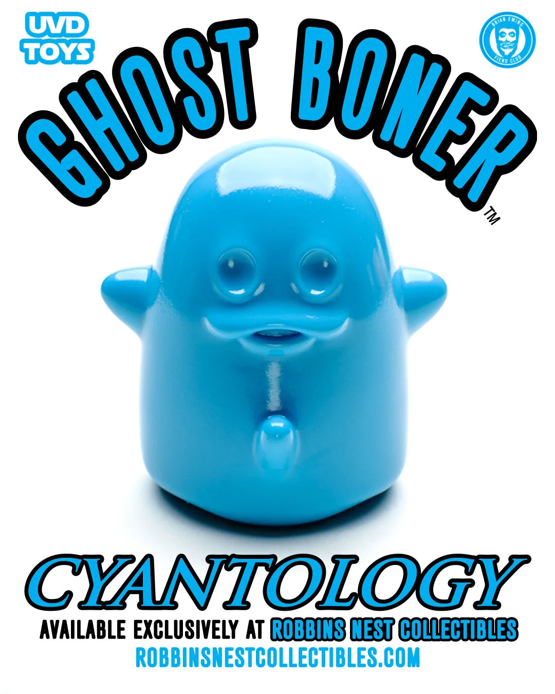 Available NOW from ROBBINS NEST COLLECTIBLES! The latest Ghost Boner 3” vinyl from @BrianEwing x @UVDtoys! The CYANTOLOGY GHOSTBONER colorway is limited to 100 pieces and can ONLY be purchased from ROBBINS NEST COLLECTIBLES. Make sure to grab one of these for your collections while supplies last! These will not be available from @BrianEwing or @UVDtoys.